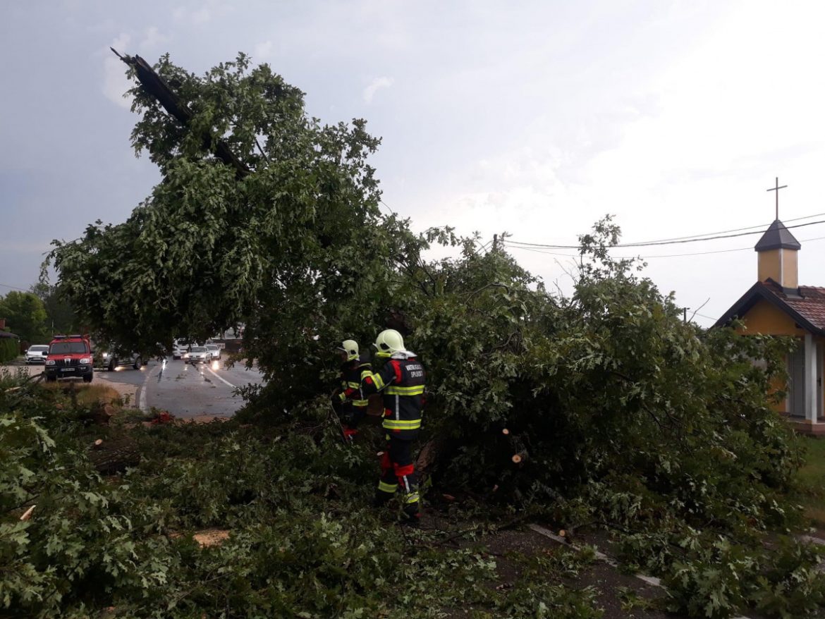 Nevrijeme je zahvatilo i Derventu, gdje zabilježeno obaranje drveća, kao što je slučaj sa naseljem Lug. Tamo je uslijed jakog vjetra došlo do rušenja starog hrasta koji je pao na put, ali je brzom reakcijom vatrogasaca ono uklonjeno.