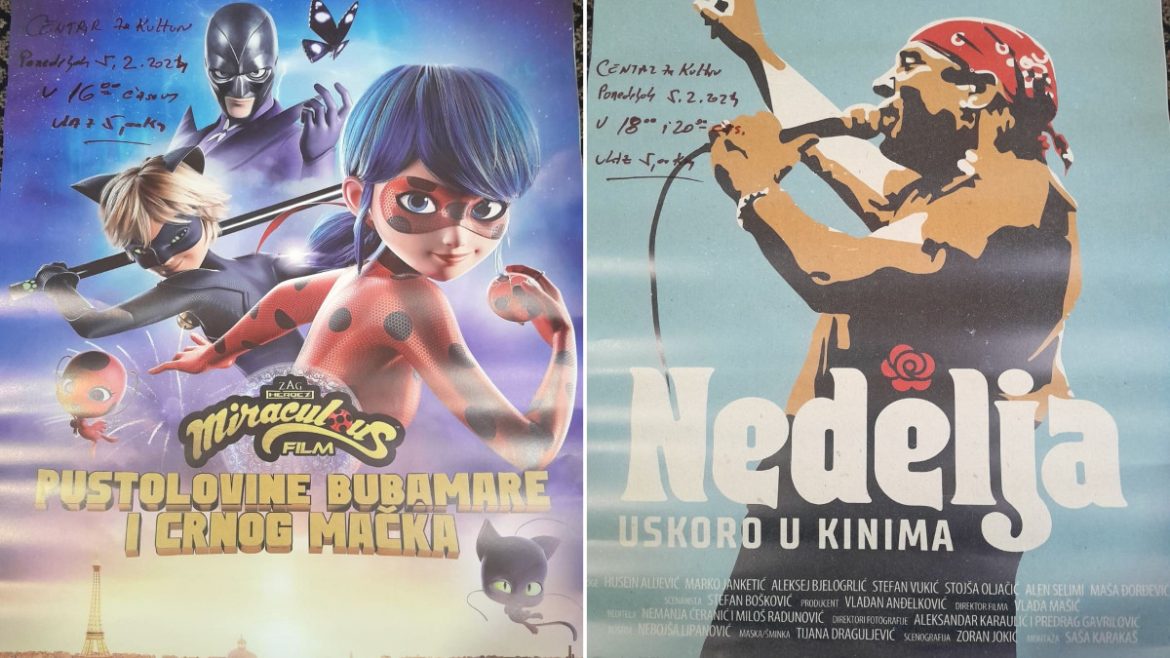 Novi bioskopski hitovi “Pustolovine bubamare i crnog mačka” i “Nedelja” biće predstavljeni derventskoj publici u Centru za kulturu u ponedjeljak 05.02.2024 godine, a cijena ulaznice je 5KM