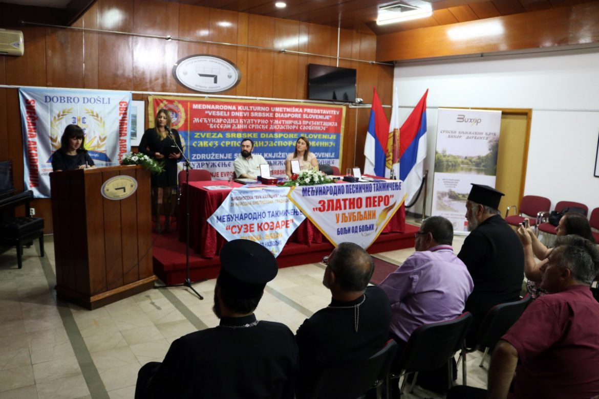 Svečanu akademiju, koja je održana sinoć u prostorijama Centra za kulturu, organizovali su Savez srpske dijaspore Slovenije, Udruženje srpskih književnika Slovenije i Evropske akademije srpskih nauka u umjetnosti, u saradnji sa Srpskim književnim klubom “Vihor” iz Dervente.