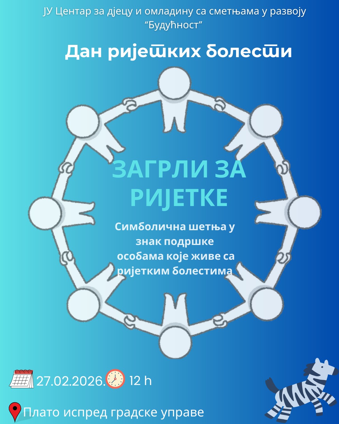 Povodom obilježavanja Međunarodnog dana rijetkih bolesti, u petak, 27. februara, Centar za djecu i omladinu sa smetnjama u razvoju „Budućnost“ organizuje šetnju podrške sugrađanima koji žive sa rijetkim bolestima.